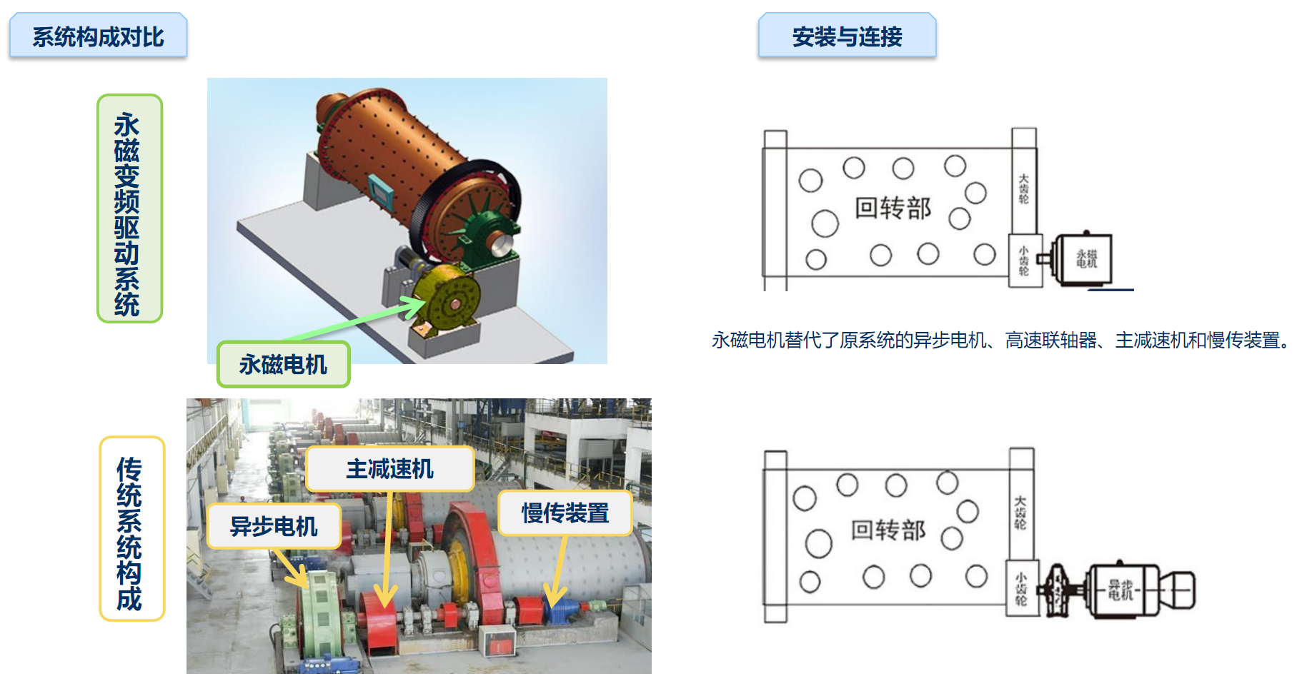 • 传动简化:替代异步电机、减速机、慢传装置,精简结构,减少故障点。